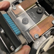 - Ontkoppel het gehele systeem door de schuifblok geleiders los te schroeven